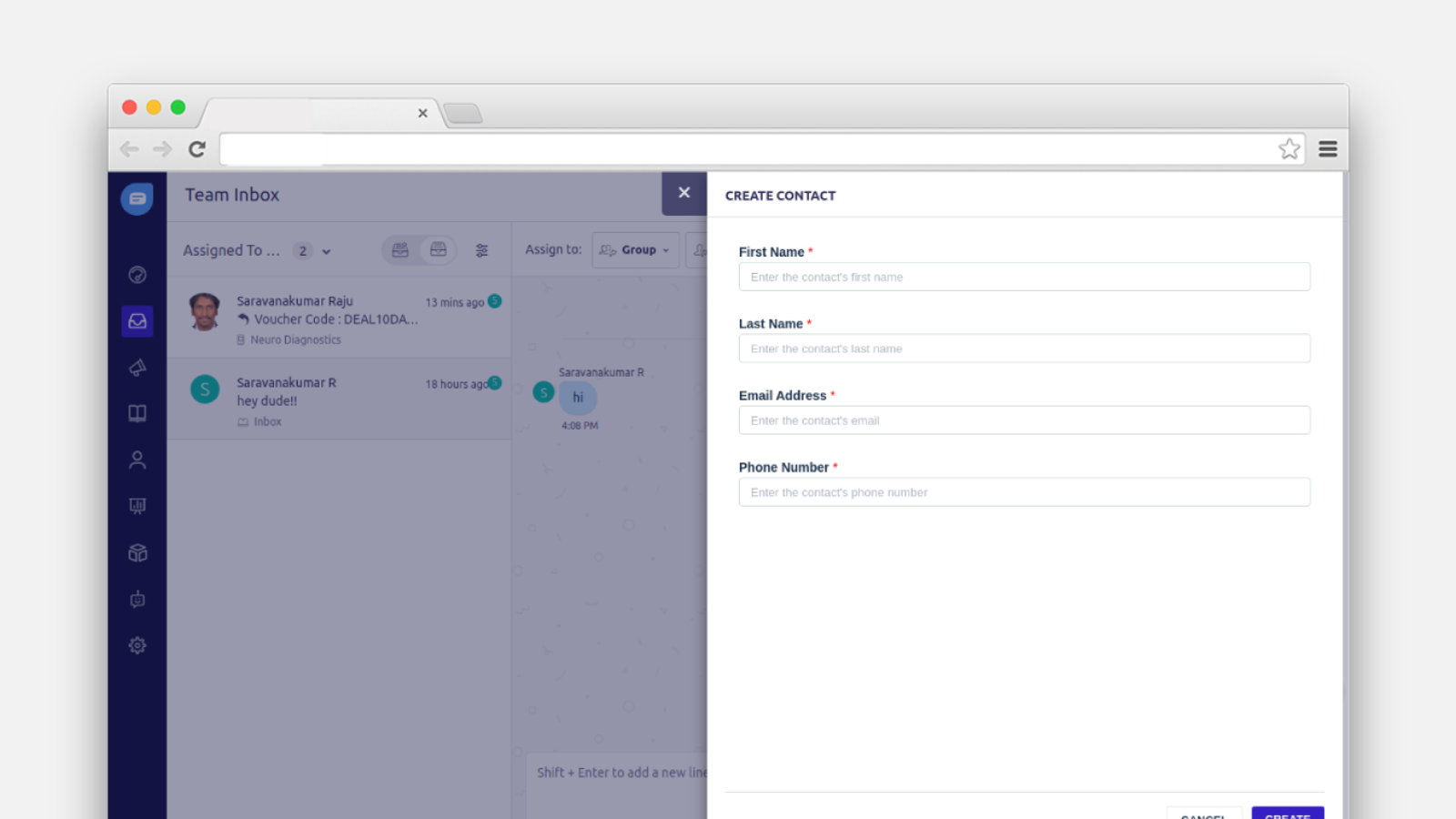 Create Contact inside Freshchat