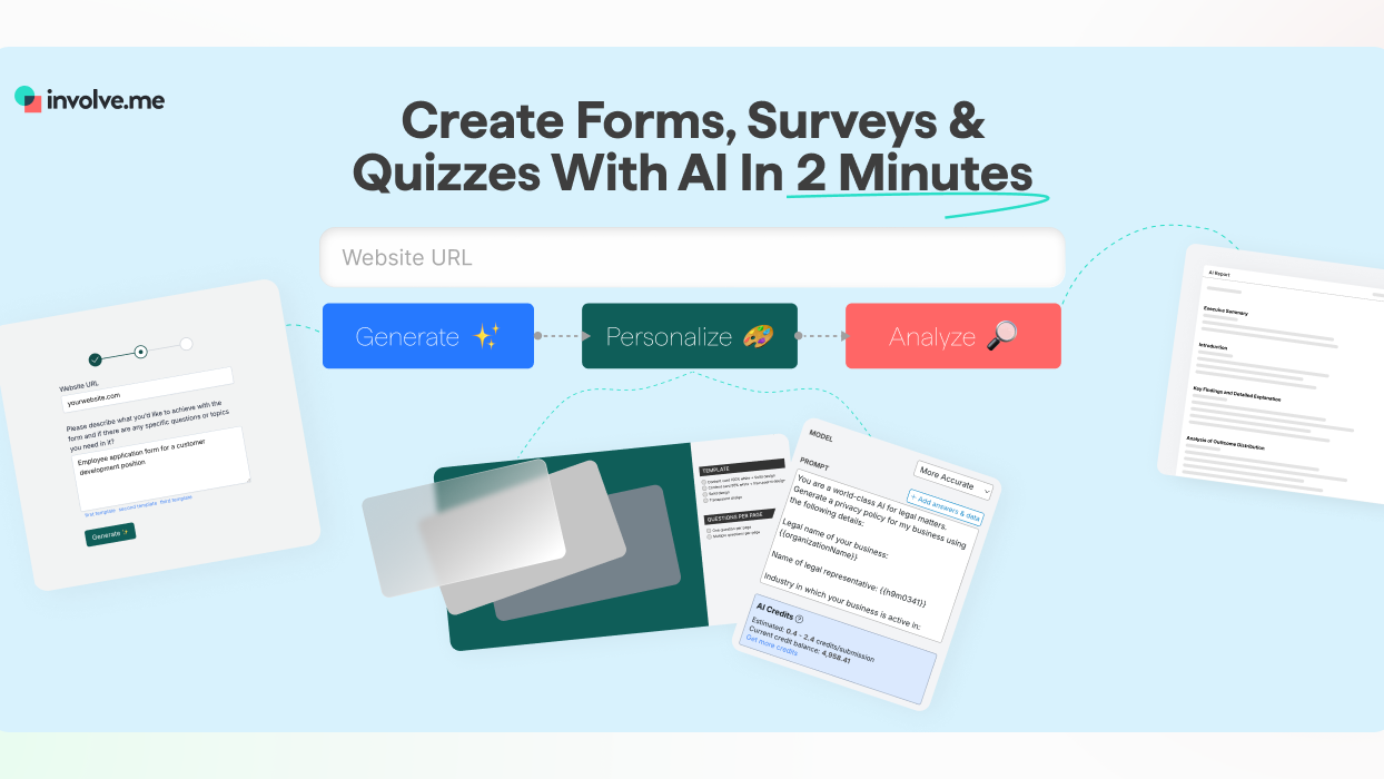 Use our AI builder to instantly build lead generation funnels. On top of this, involve.me contains AI features for generated text as well as AI insight reports to summarise your results