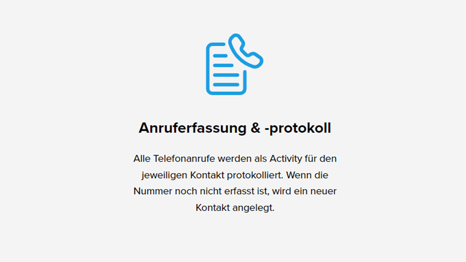 Alle Telefonanrufe werden als Activity für den jeweiligen Kontakt protokolliert. Wenn die Nummer noch nicht erfasst ist, wird ein neuer Kontakt angelegt.