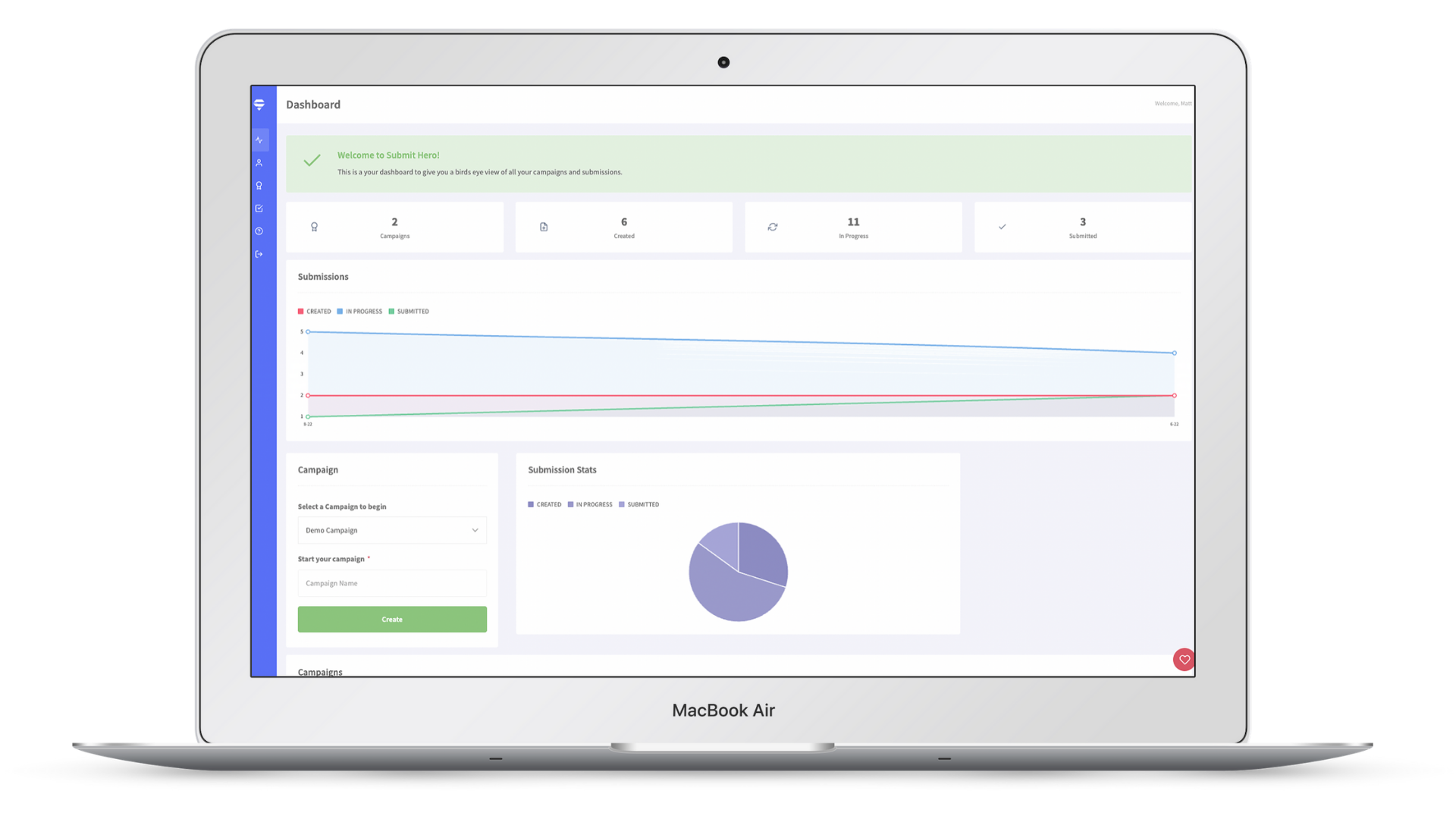 Manage multiple campaigns from a single dashboard. Get high-level application stats and see progress over time.