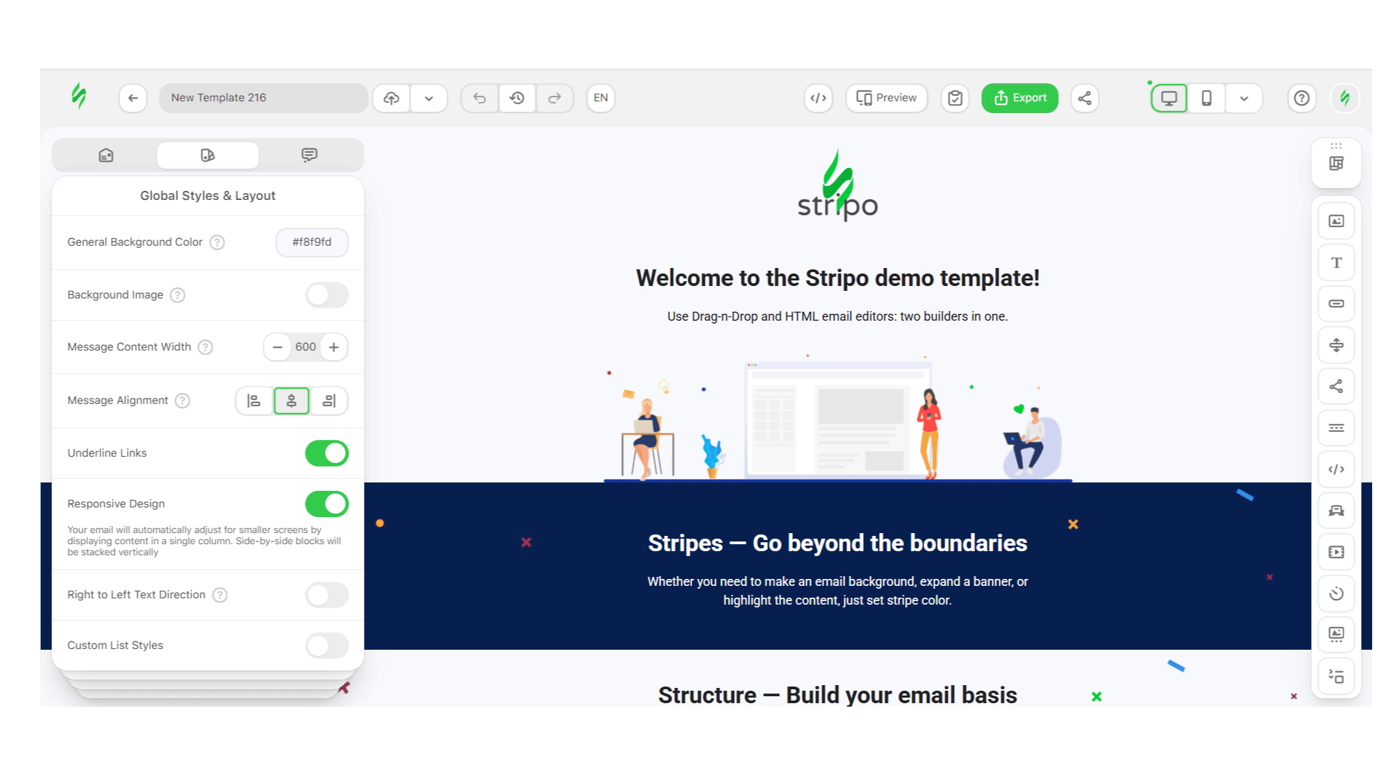 Stripo is an email design platform that enables you to create beautiful HTML emails of any complexity faster than ever before. You can also build Interactive and Dynamic emails with no coding skills.