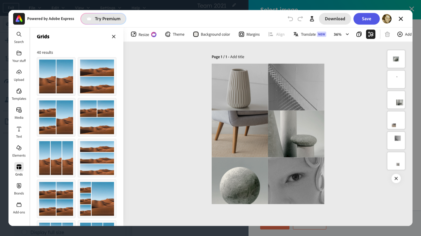 Design and edit with royalty-free Adobe Stock photos, videos, music tracks, and design elements.