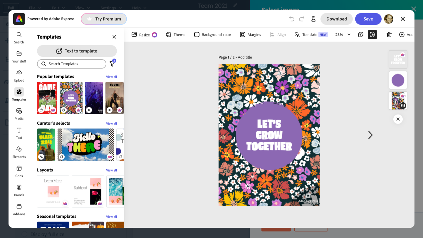 Adobe Creative Cloud subscribers have Premium access to Adobe Express included.
