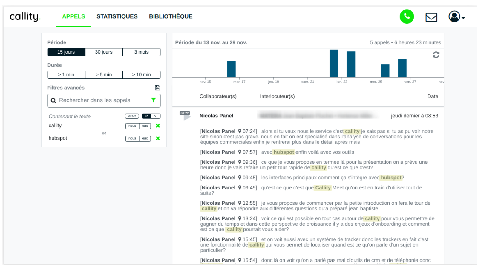 En croisant les données de votre CRM HubSpot avec Callity, vous savez précisément comment vos collaborateurs intéragissent avec vos clients et prospects et vous pouvez les coacher plus efficacement au quotidien.
