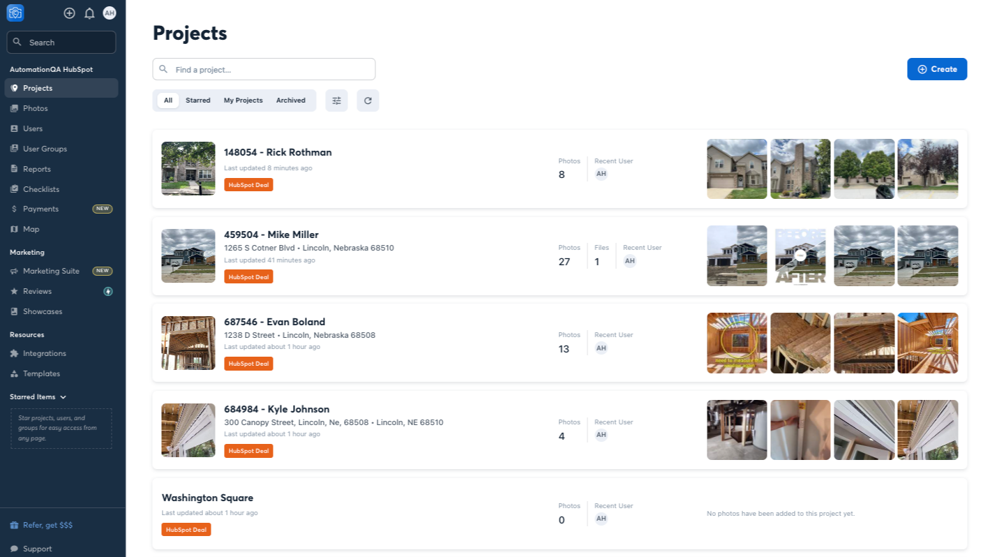 Die CompanyCam-Integration für HubSpot verbindet Ihre CRM-Pipeline mit der Außendienstdokumentation, sodass Projekte automatisch erstellt werden, wenn Geschäfte vorankommen.