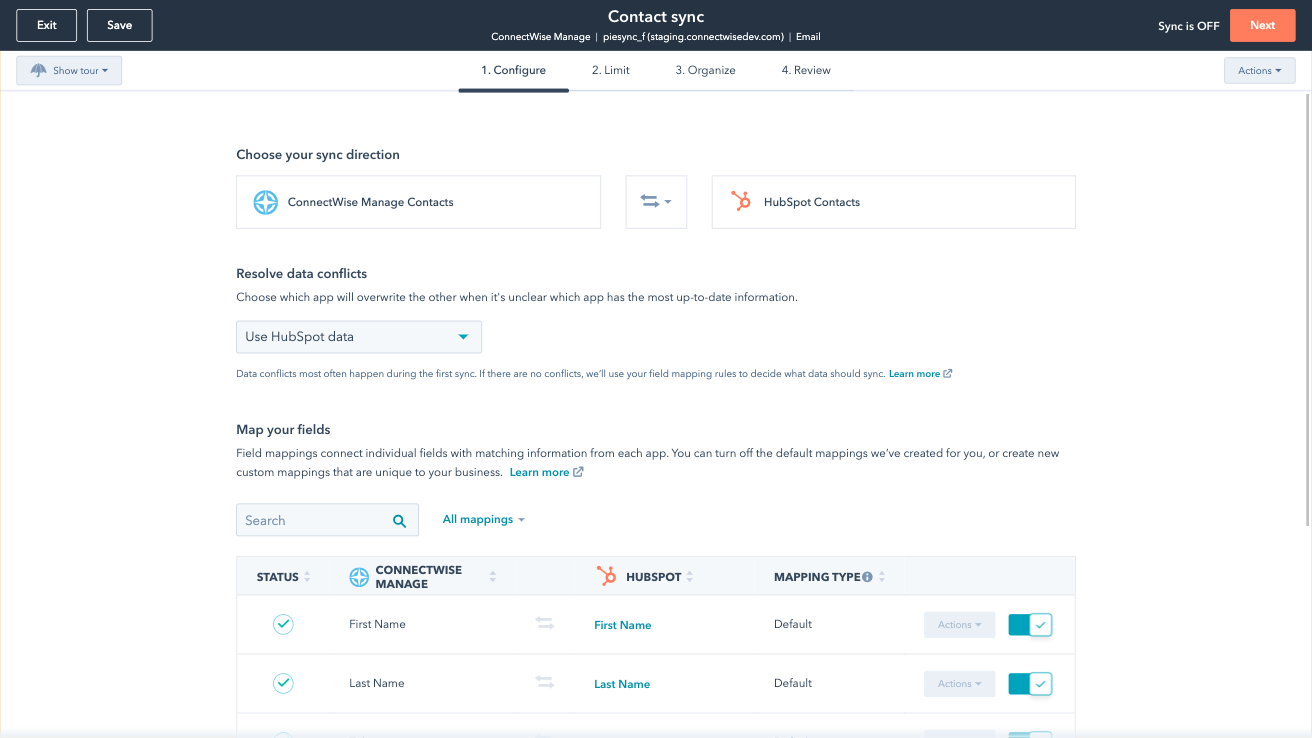 Data Sync - Sync data between Connectwise PSA and HubSpot