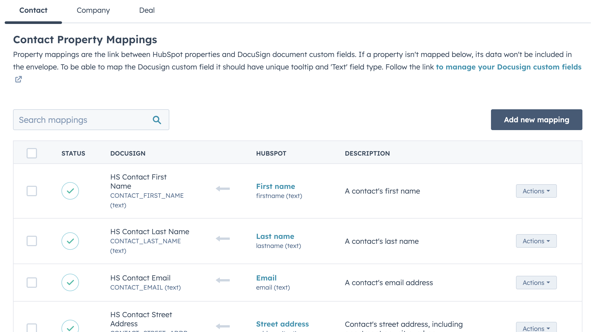 Übernehmen Sie benutzerdefinierte HubSpot-Felder in DocuSign