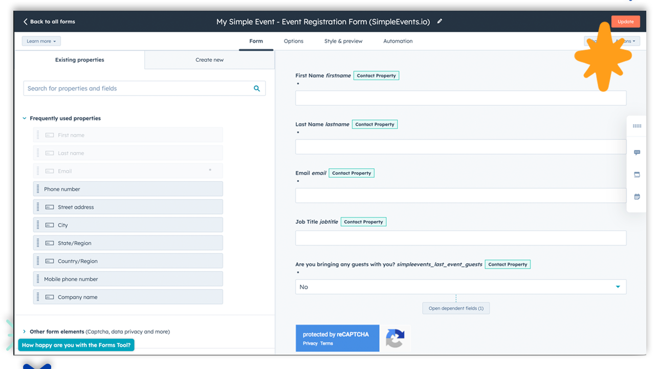 SimpleEvents.io automatically creates a HubSpot form for each event, allowing you to use any and all properties within your HubSpot account.