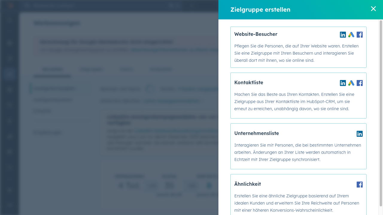Verbinden Sie Ihr Anzeigennetzwerk-Pixel mit HubSpot, um Kundeninteraktionen auf Ihrer Website nachzuverfolgen und CRM-Daten zu nutzen, um maßgeschneiderte Zielgruppen für personalisierte Nachrichten zu erstellen und die Interaktionen mit Werbeanzeigen zu steigern.