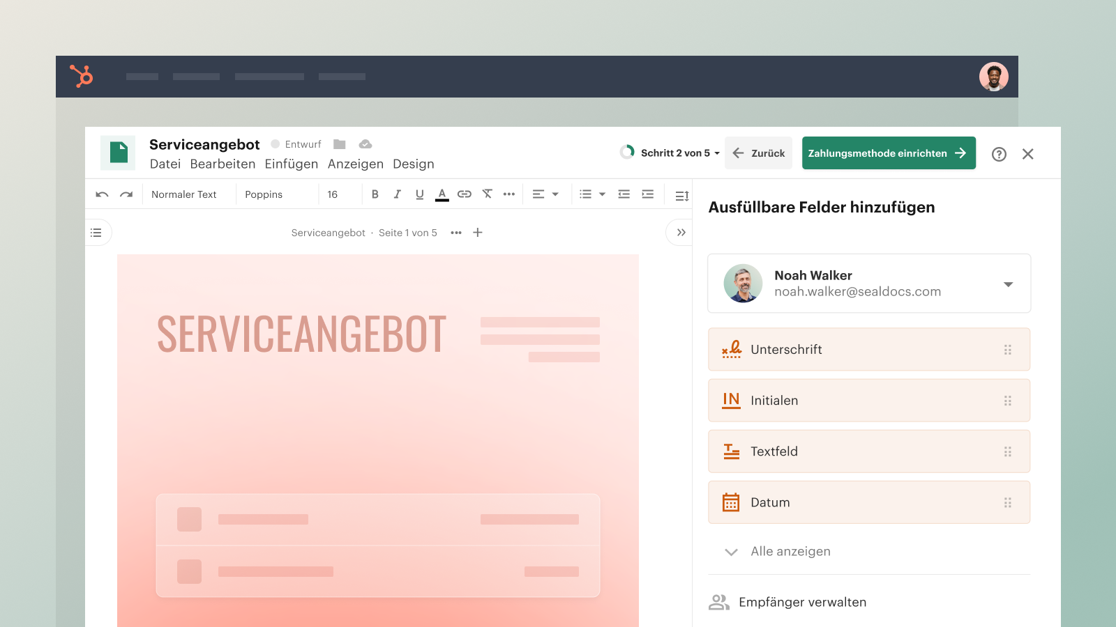 Ab sofort können Sie professionelle Angebote, Kostenvoranschläge und Verträge direkt in HubSpot erstellen und Dokumente entwerfen, genehmigen und unterzeichnen. Nutzen Sie dazu einfach die zahlreichen Funktionen rund um Zusammenarbeit, Genehmigungen und rechtswirksame Signaturen in HubSpot.