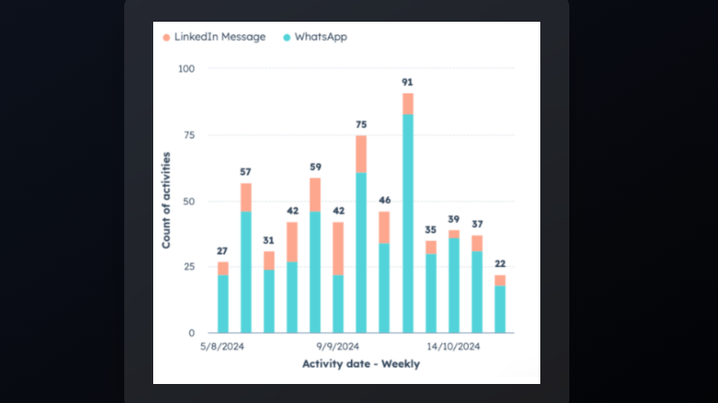 Built-in HubSpot reporting for WhatsApp conversations to manage your team's effectiveness and efficiency.