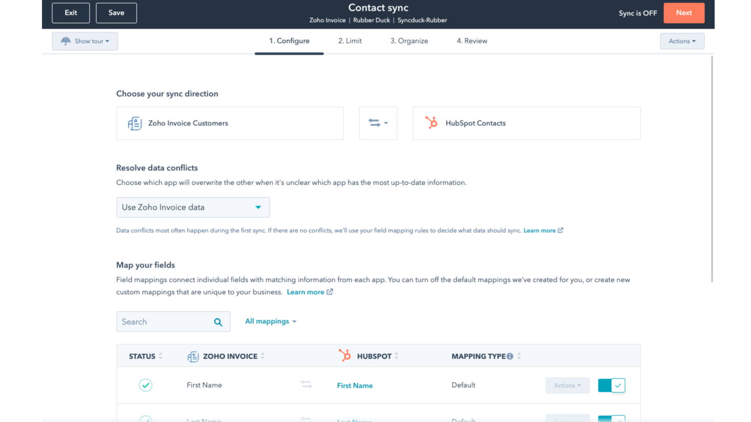 Data Sync - Sync Zoho Invoice contacts with HubSpot