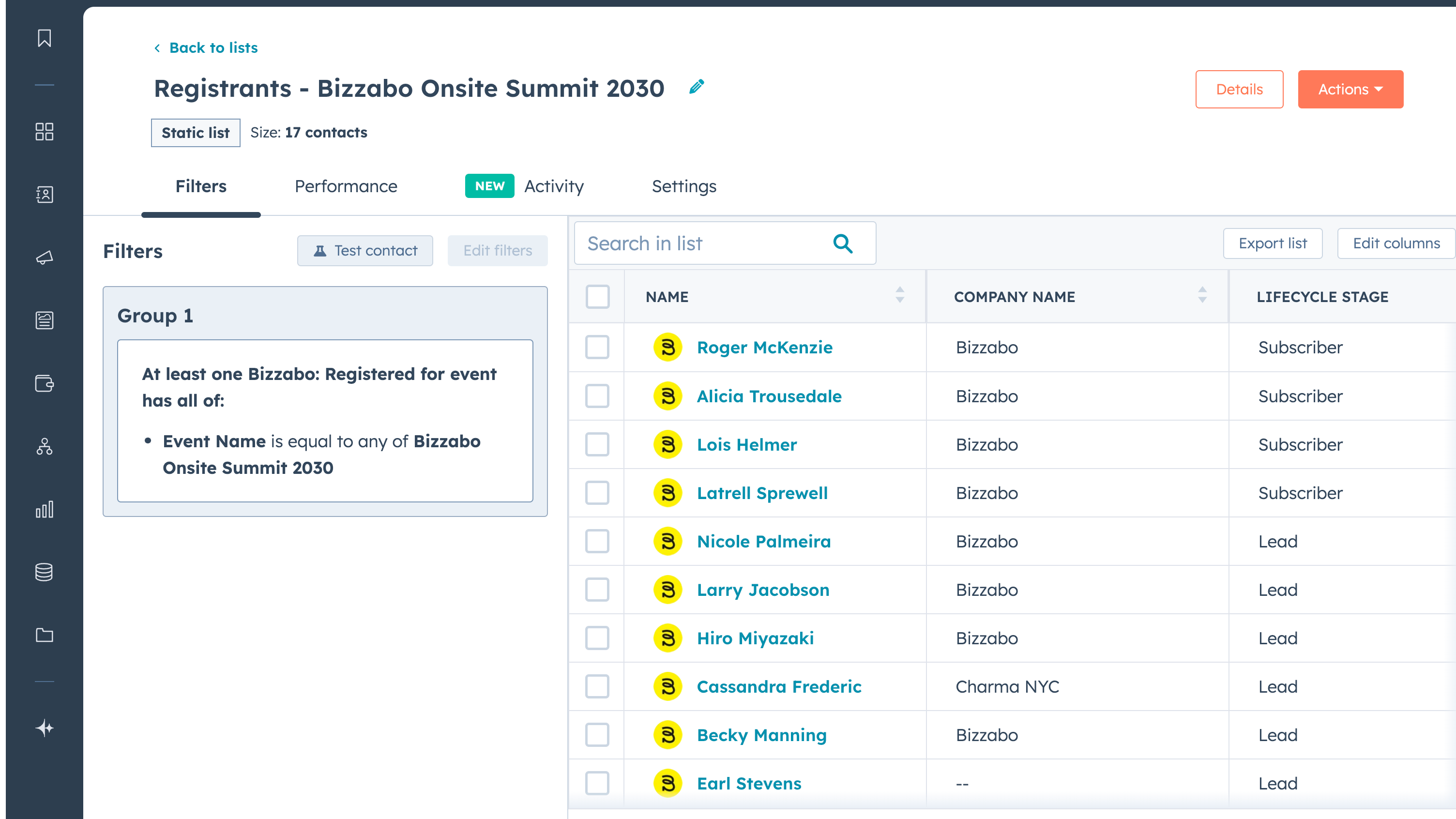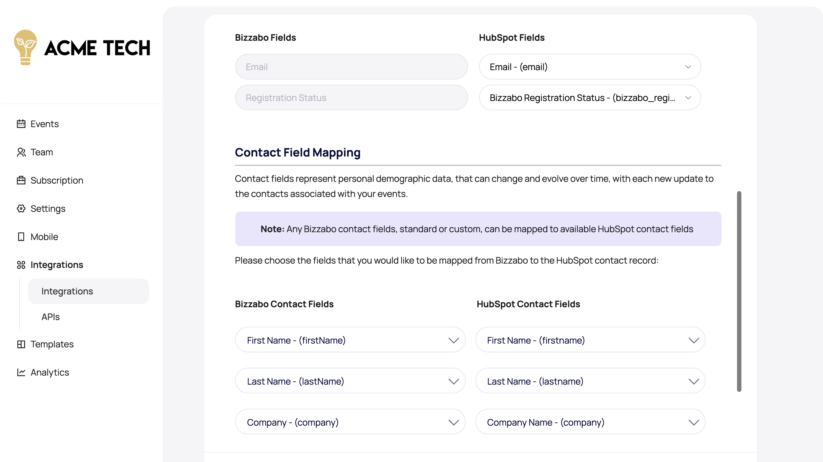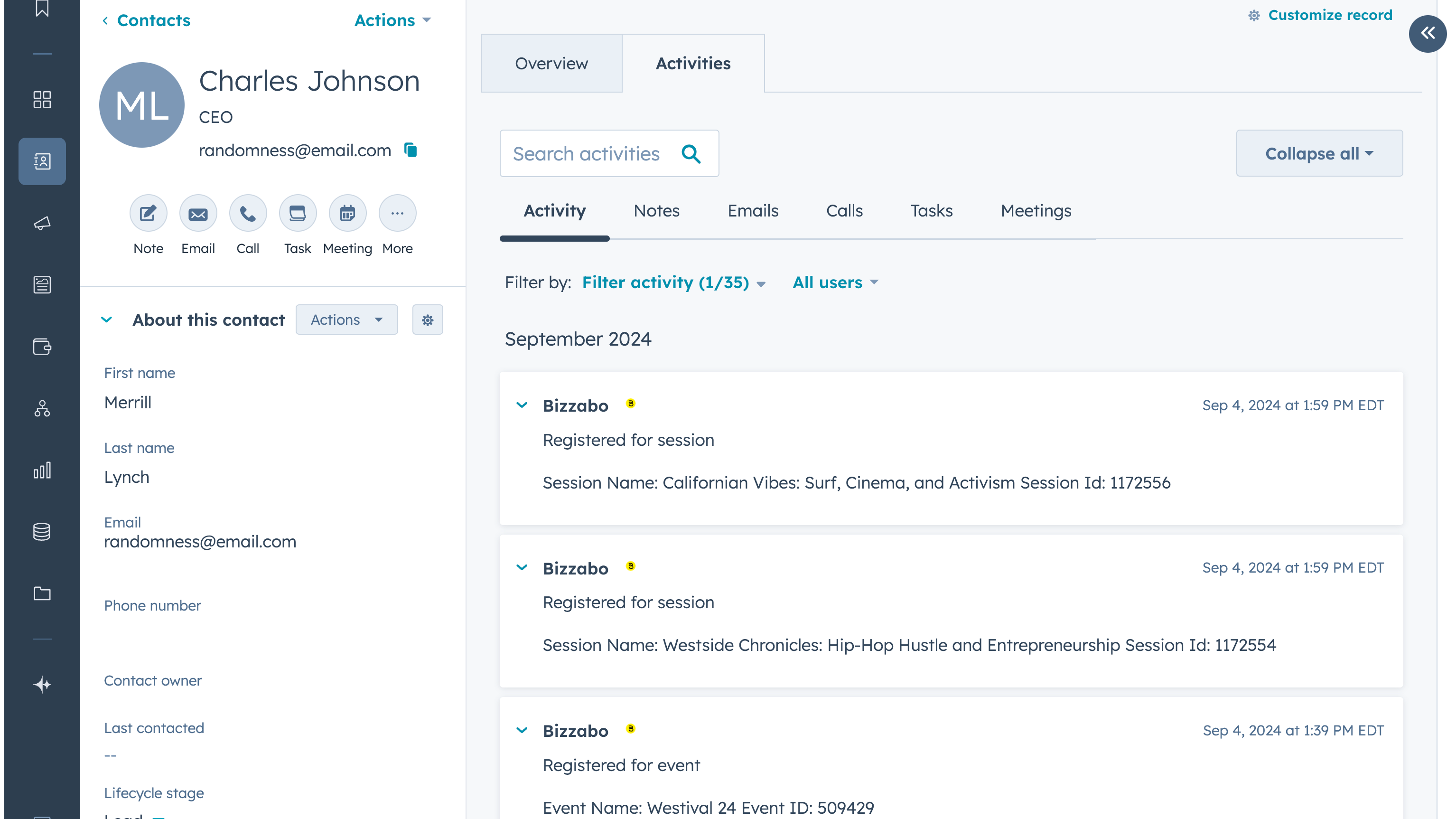 Integrating Bizzabo with HubSpot Contacts and activities ensures accurate synchronization of registration and attendee data, enhancing data accuracy and optimizing your CRM processes.