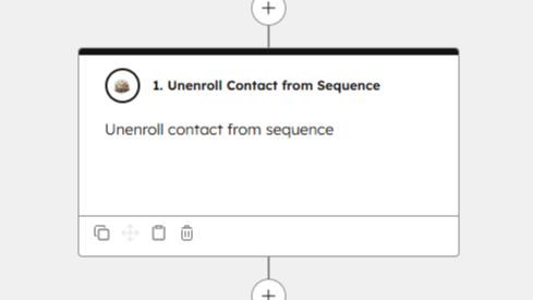 Unenroll contacts from a sequence using a custom workflow action. This action temporarily logs a meeting with the contact in question and moments later deletes it in order to unenroll the contact from their sequence