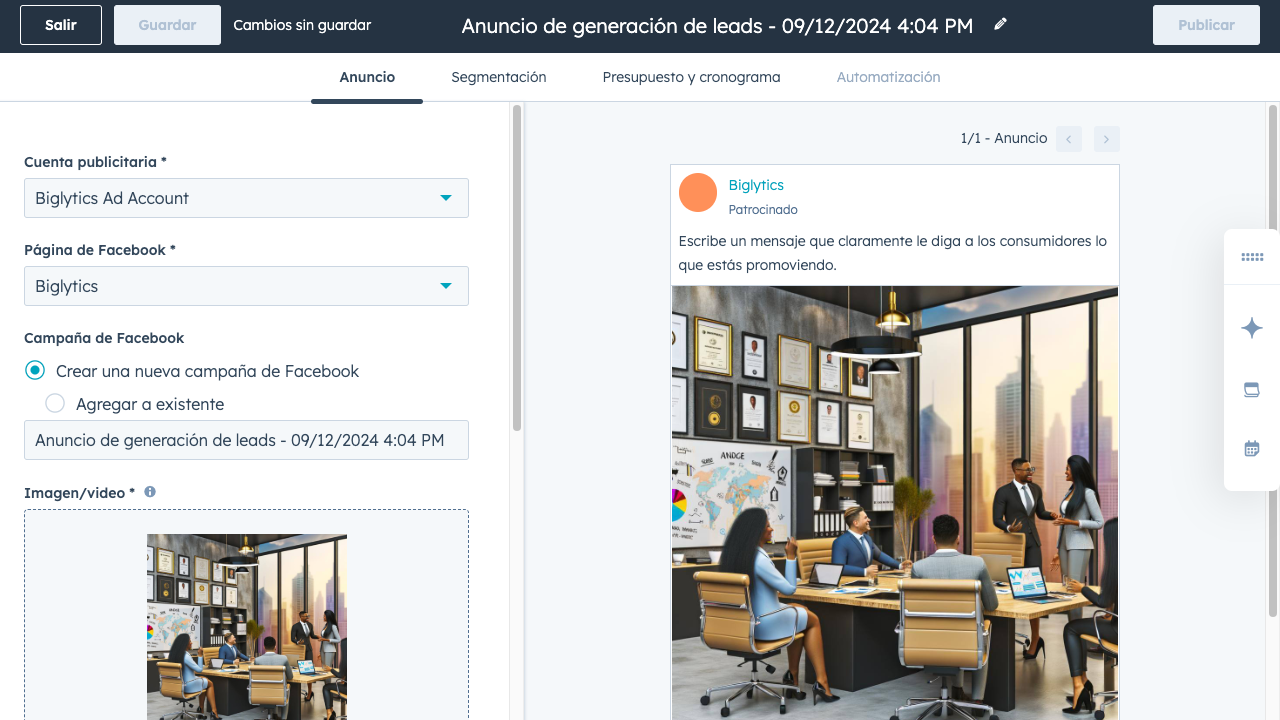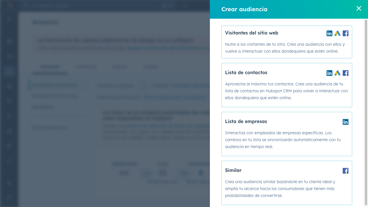 Crea anuncios para clientes potenciales en HubSpot