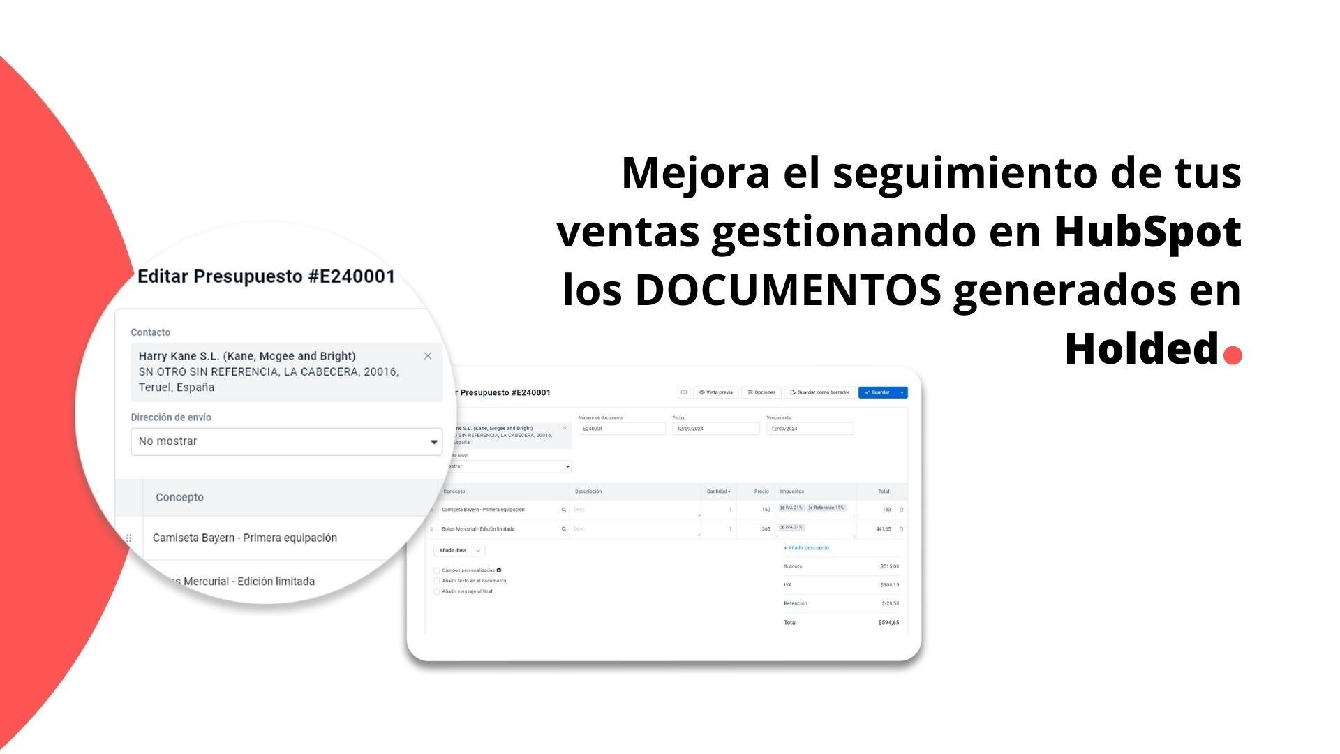 Permite gestionar y sincronizar los documentos generados en Holded dentro del entorno de HubSpot, facilitando el seguimiento desde ambas herramientas.