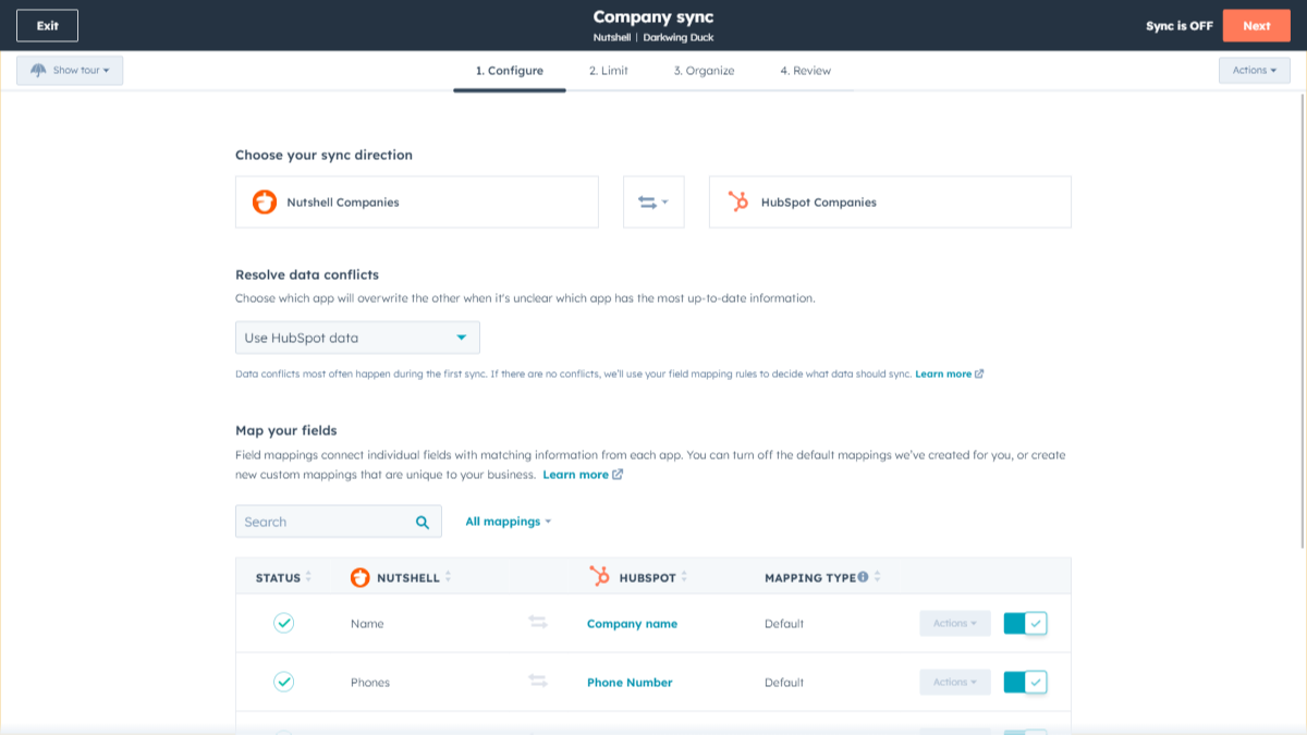 - Two-way sync: Data is shared between Nutshell and HubSpot in real time