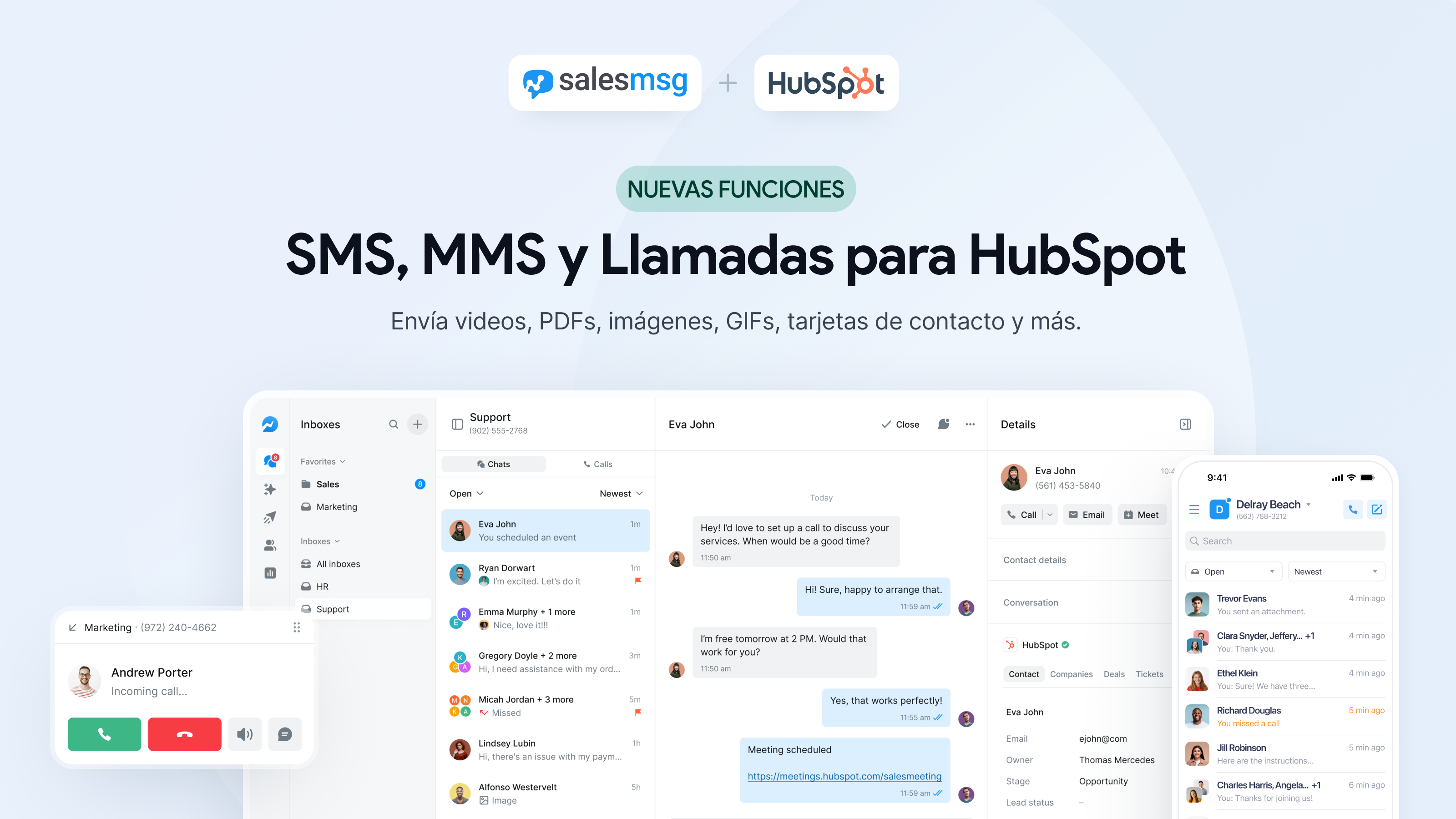 Ahora, tus clientes potenciales y clientes pueden enviarte mensajes de texto, por lo que es fácil para tus ventas, marketing y equipos de apoyo para participar, responder preguntas y cerrar acuerdos, todo a través de mensajes de texto.