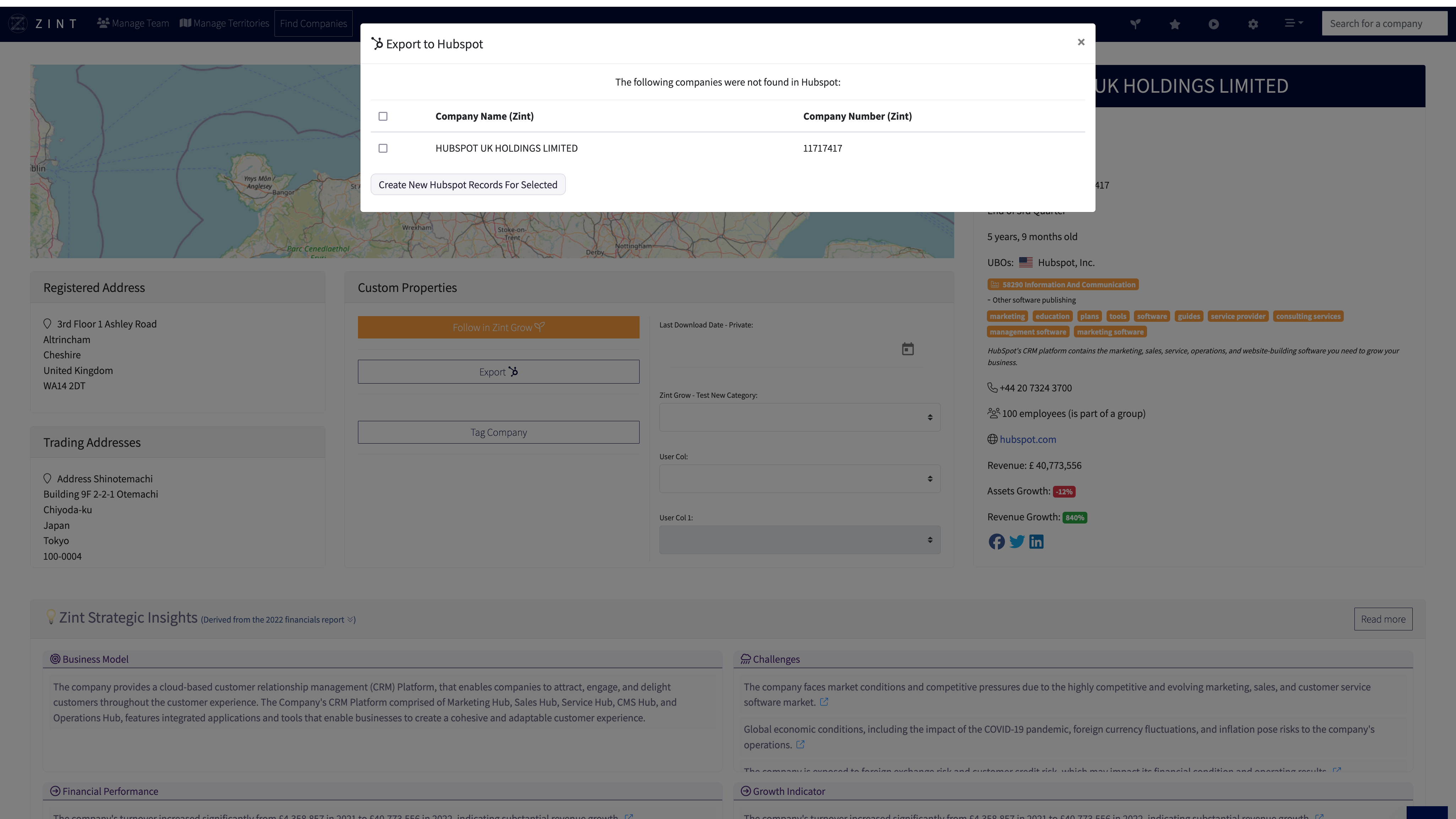 Instantly create new Companies in HubSpot and update existing records with deep level data and insight from Zint.