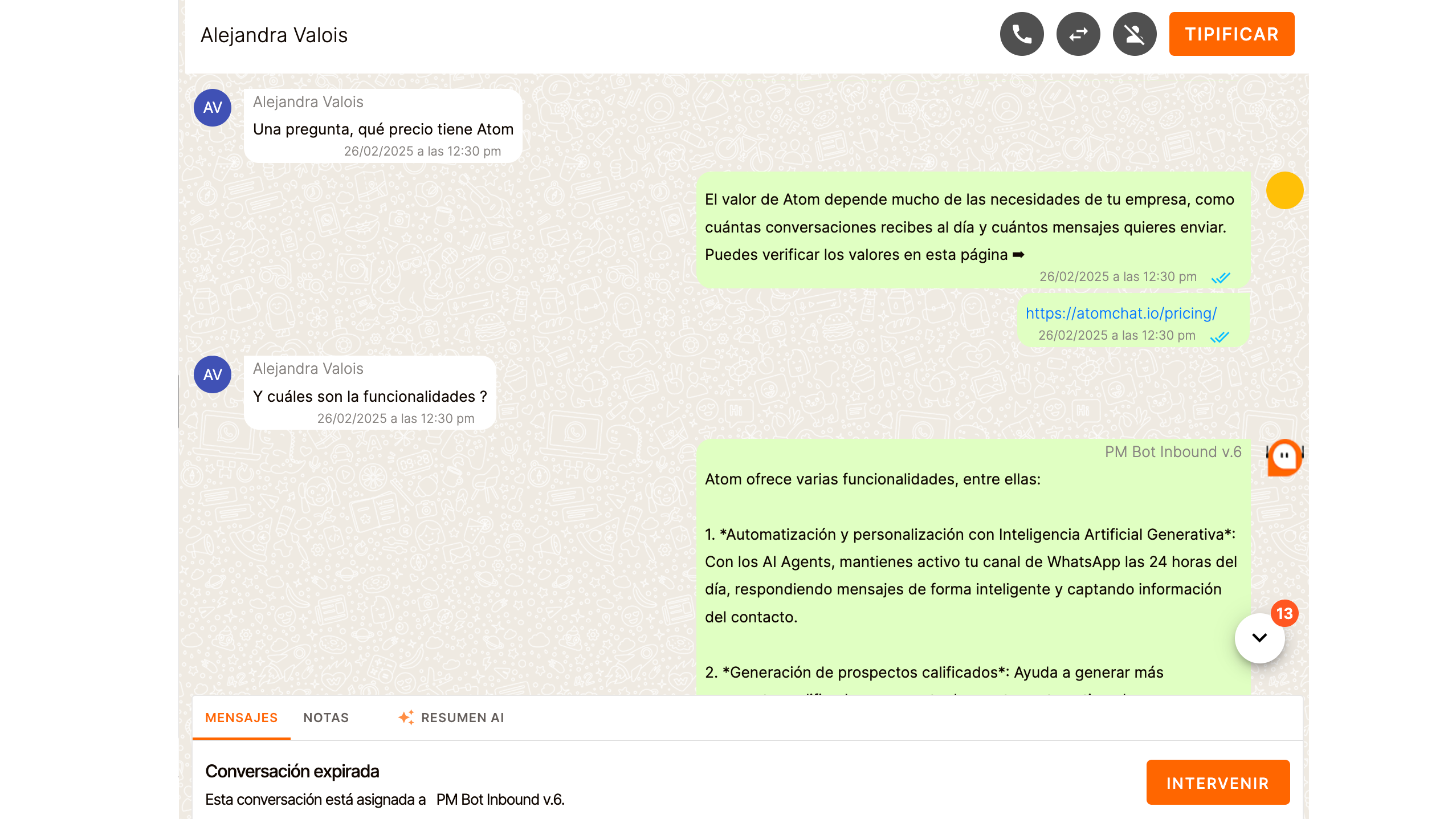 Con Atom eliminas el trabajo manual de actualizar información de tus contactos, puedes actualizar automáticamente: - La creación de contactos - Actualización de un contacto existente -Actualizar etapa del lead -Crear un deal o negocio. Así tus contactos quedan sincronizados desde la primera conversación y para siempre, eliminando el riesgo de perder oportunidades de venta.