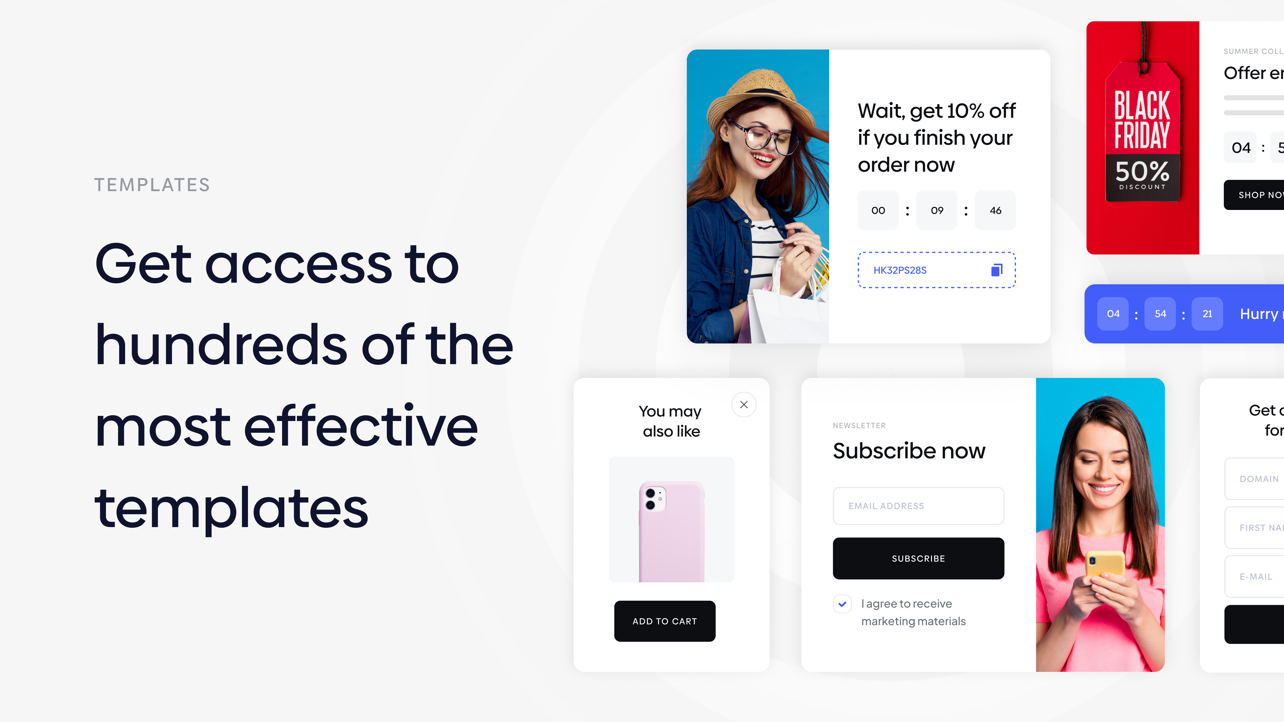 Whatever your next campaign, Personizely offers popups templates to help you launch quickly.