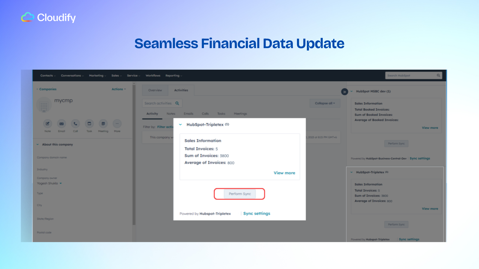 -Display up-to-date Tripletex invoice data in HubSpot -Make informed decisions with real-time insights -Access comprehensive financial metrics without switching platforms