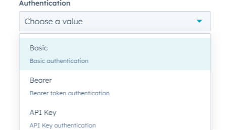 Connect securely to various external services with multiple authentication methods. Choose from no authentication, API Key (in header or query parameter), request signature in header, or OAuth for HubSpot API requests. This flexibility ensures secure integration with diverse systems.