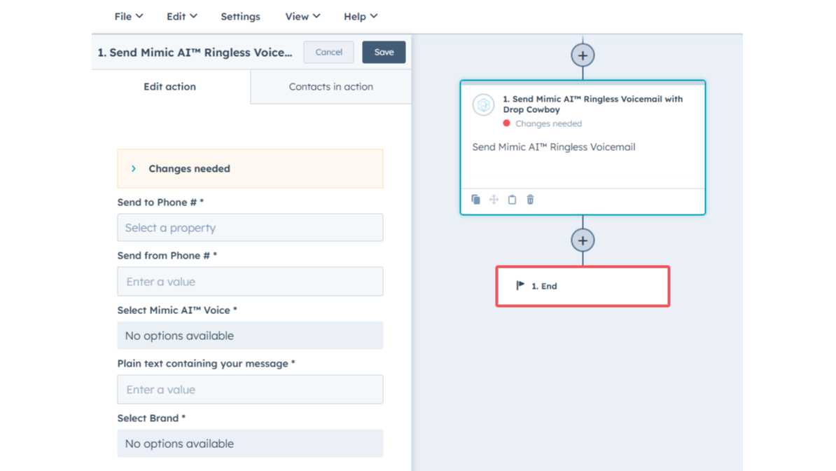 Send Mimic AI™ Voicemail with HubSpot Workflows