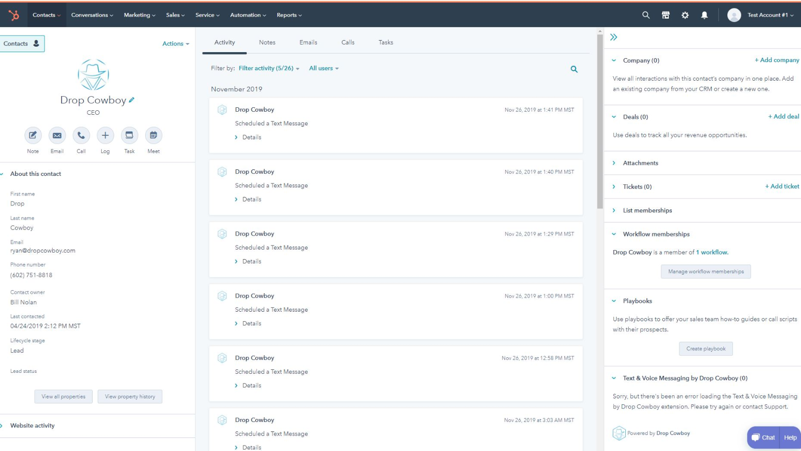 While DropCowboy seems to have all the features and functionality I want to be using, I am not even certain anything goes through. DropCowboy dashboard is unlear and even though it's in my workflows, nothing gets logged into HubSpot.