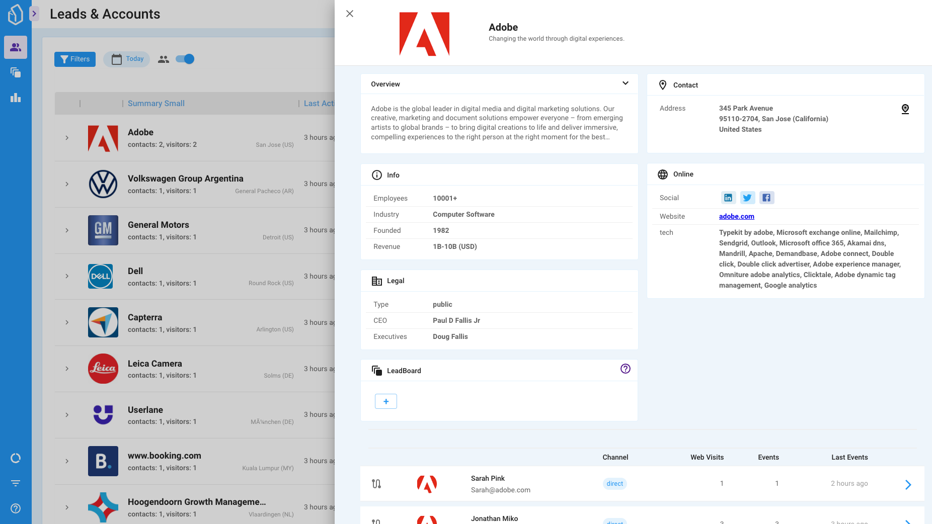 Automatically enrich the contacts that visit your website with company (firmographic) details.
