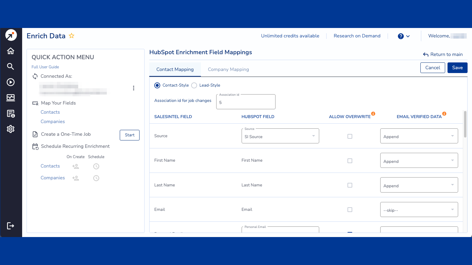Map SalesIntel's data to your HubSpot fields