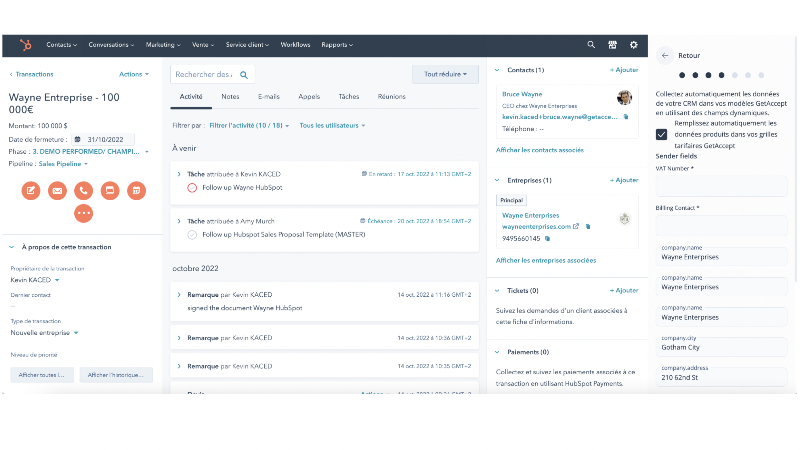 Remplissez vos devis et propositions GetAccept en collectant automatiquement les données d’HubSpot