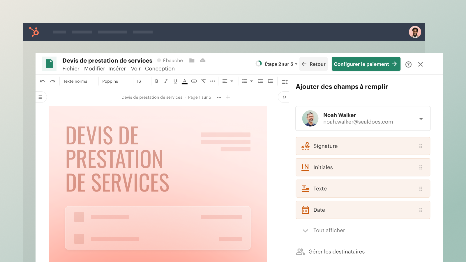 Créez des propositions, des devis et des contrats d’aspect professionnel directement depuis HubSpot. Rédigez, approuvez et signez rapidement des documents à l’aide de nos fonctionnalités collaboratives, de nos flux d’approbation et de nos signatures électroniques juridiquement contraignantes, le tout sans quitter HubSpot.