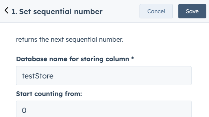 The generate sequential number workflow action simplifies the task of generating sequential numbers within HubSpot. You can easily give all your customers a unique sequential number based on a specified start value, while also defining the length, Prefix and Suffix of said number.