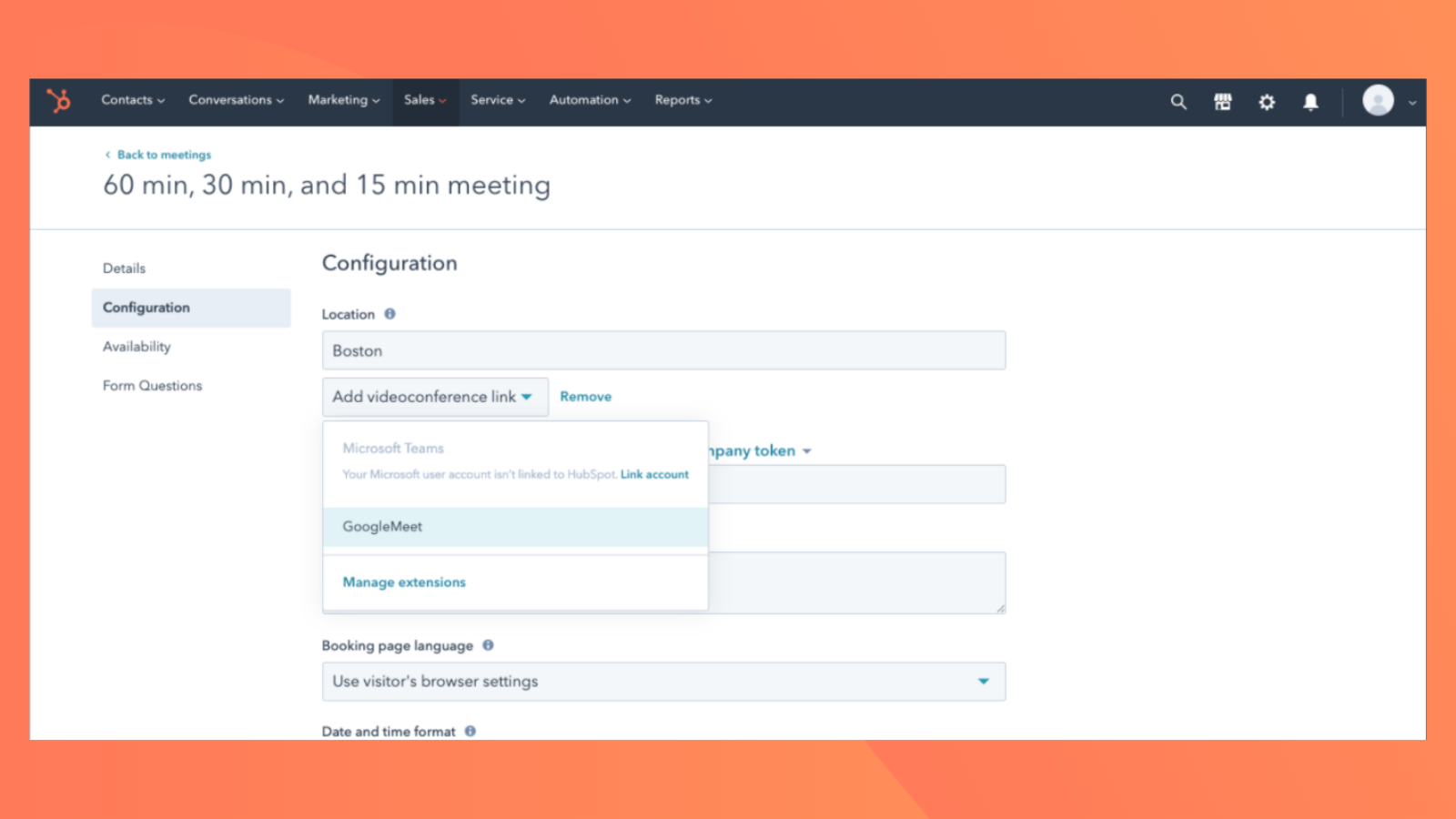 Créer un lien de réunion pour Google Meet dans HubSpot