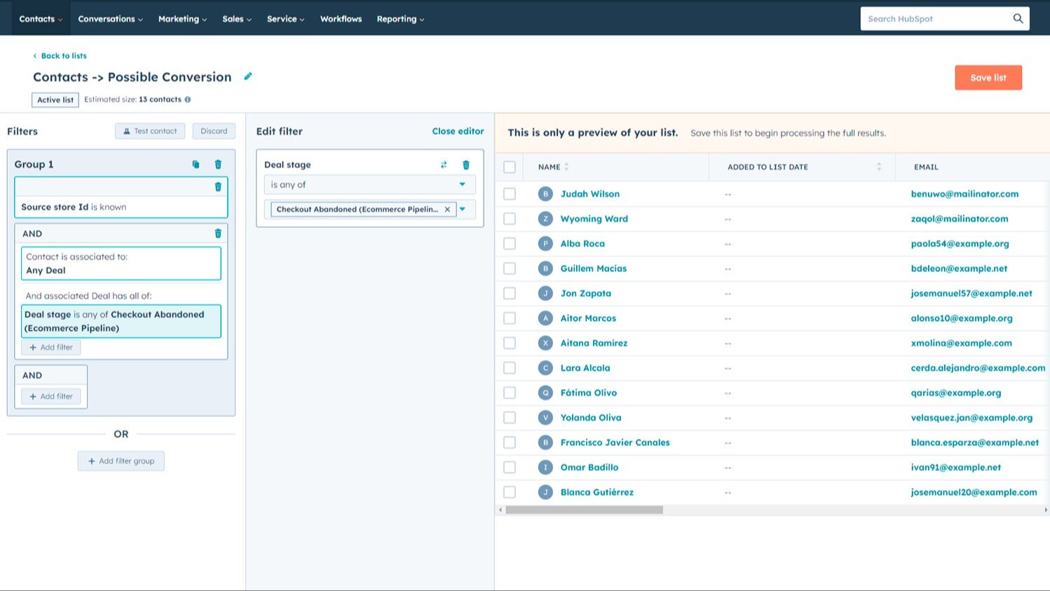 Créez des listes ciblées de clients en fonction de ce qu'ils ont acheté, quand et comment ils l'ont fait (même l'utilisation de remises et de groupes). Améliorez vos efforts de marketing en segmentant et en organisant vos clients et vos prospects avec les listes intelligentes de HubSpot en utilisant les champs intégrés de votre boutique en ligne PrestaShop.
