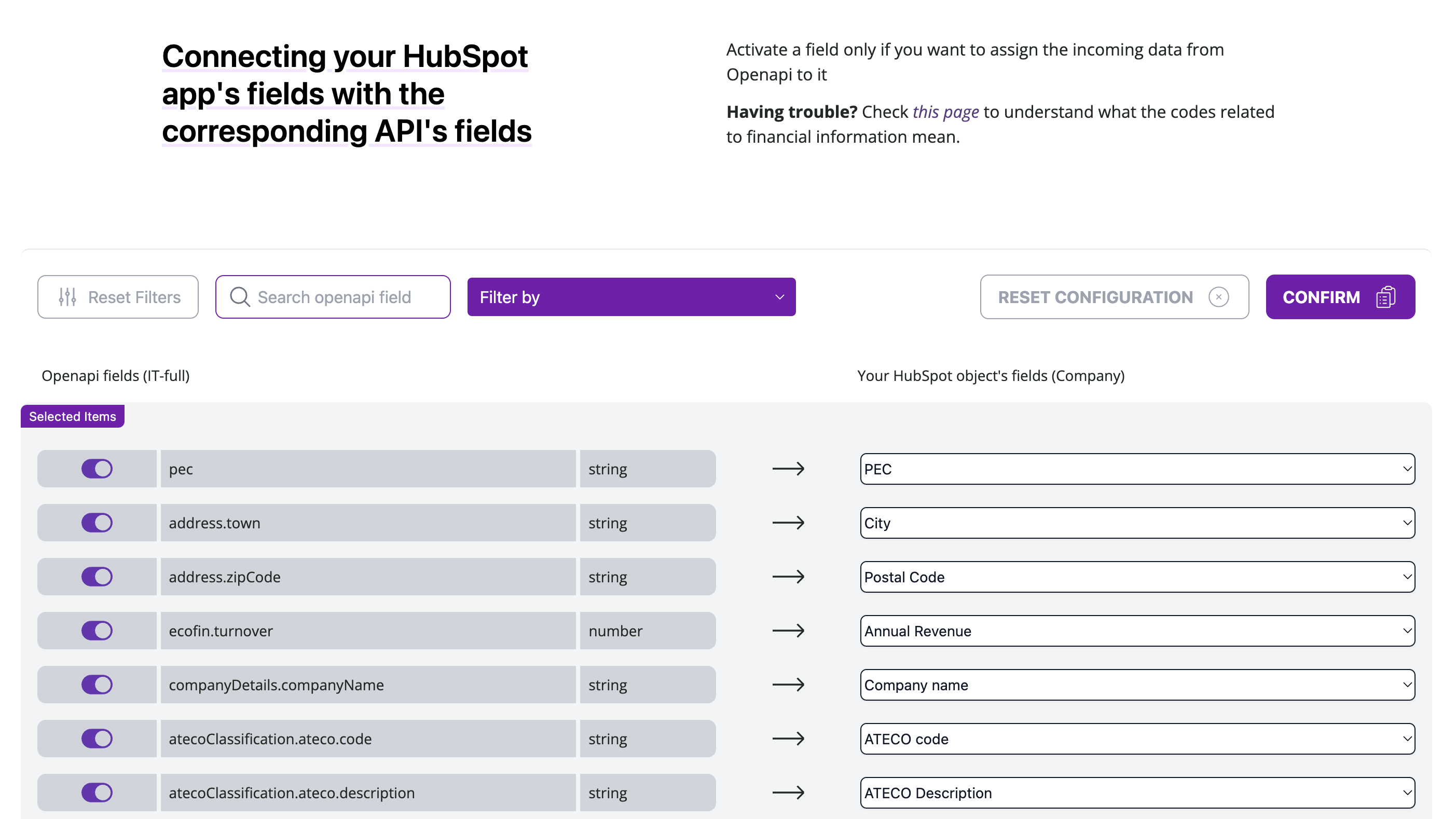 1/2 - Configure mappings between HubSpot properties and Openapi data