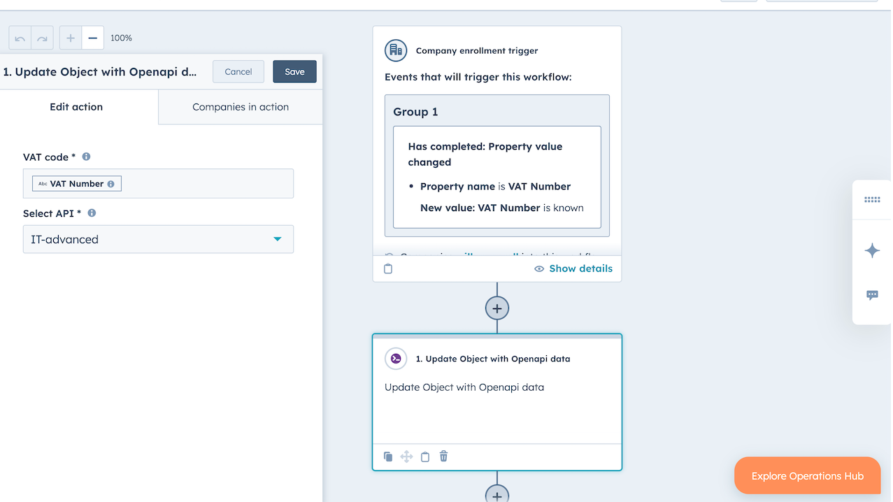 Automatically enrich and verify company information with HubSpot workflows, using Openapi data.