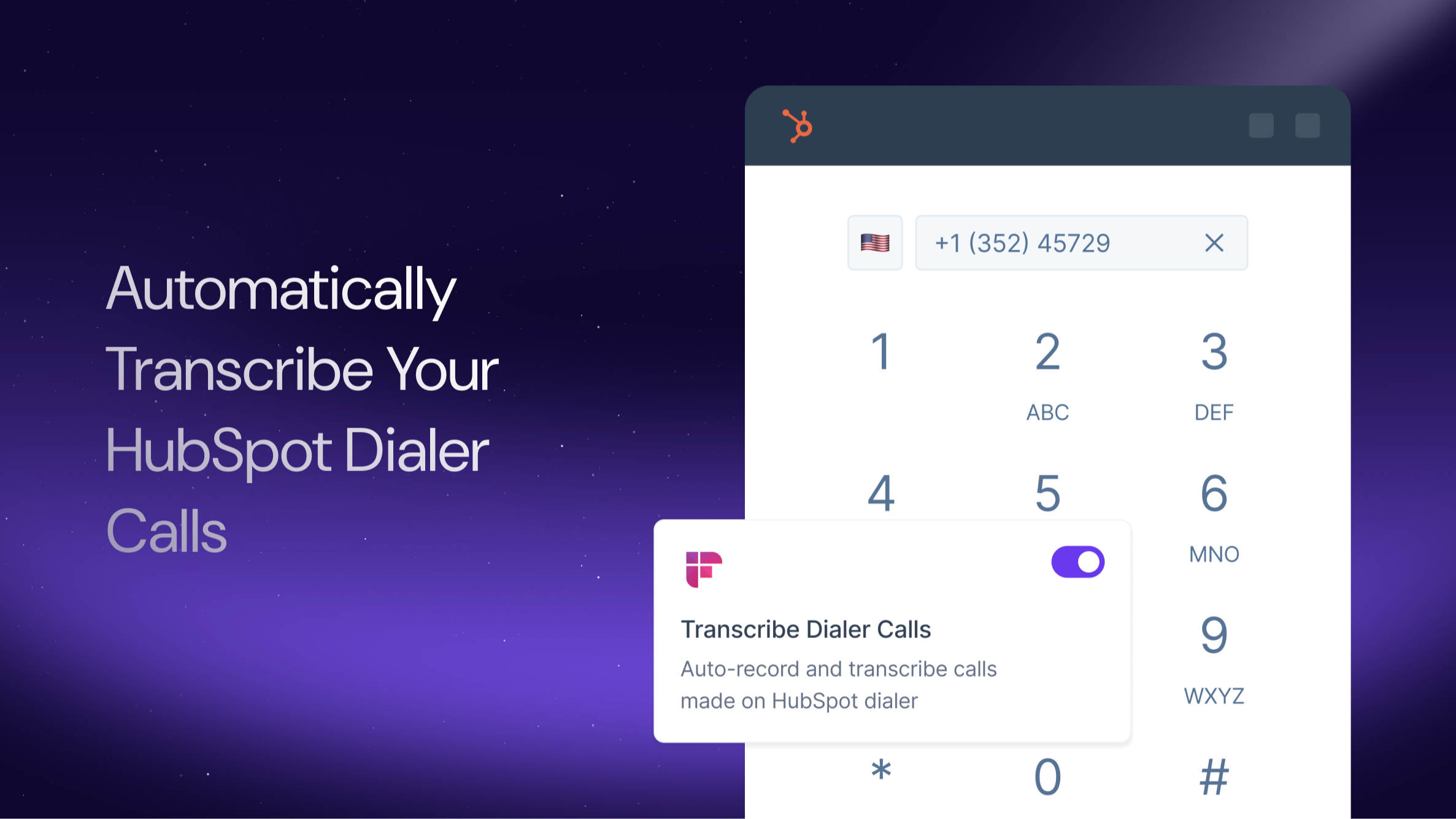 • Enhance your HubSpot Dialer experience with automatic call transcription and logging
