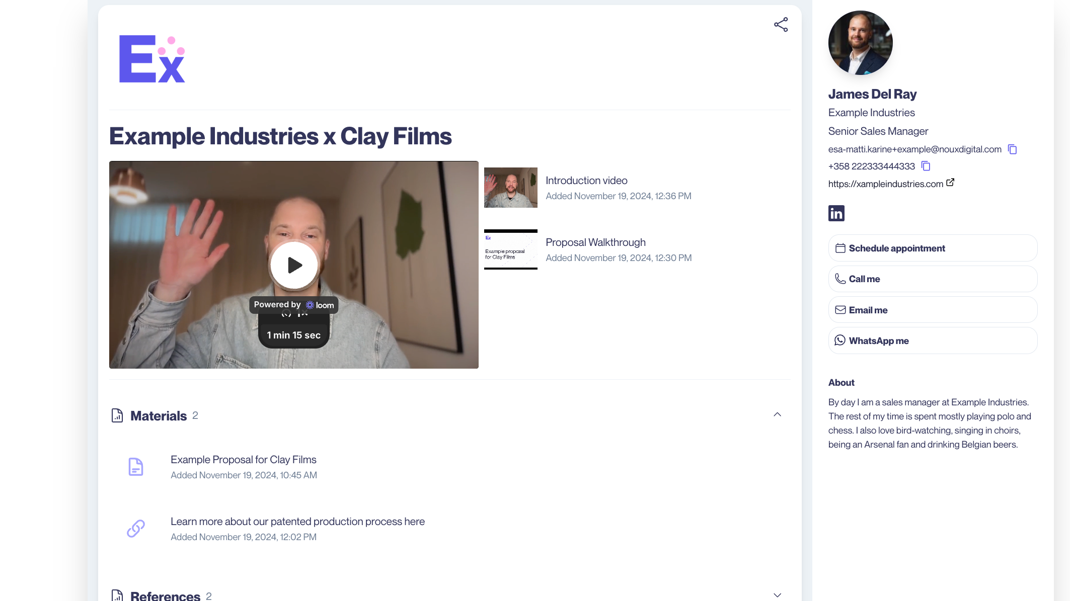 Noux is extremely easy to use: the end customer can securely and effortlessly access the room with a single click. Sellers save time with Noux’s automations that remind customers, notify sales reps, and assist with meeting notes using AI. Additionally, the integration significantly improves CRM data quality without adding extra reporting tasks. This ensures faster deal cycles, better alignment, and improved customer relationships.