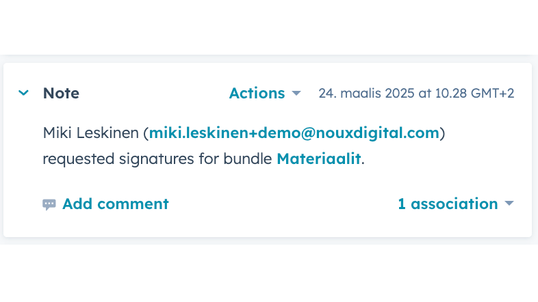 Automatically receive esign related activities as notes in your HubSpot deal. Activities include signature requests, individual signs and signable bundle completions.