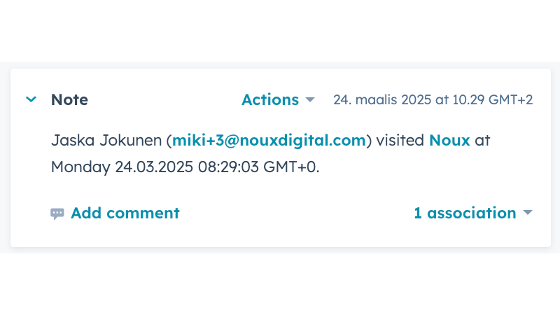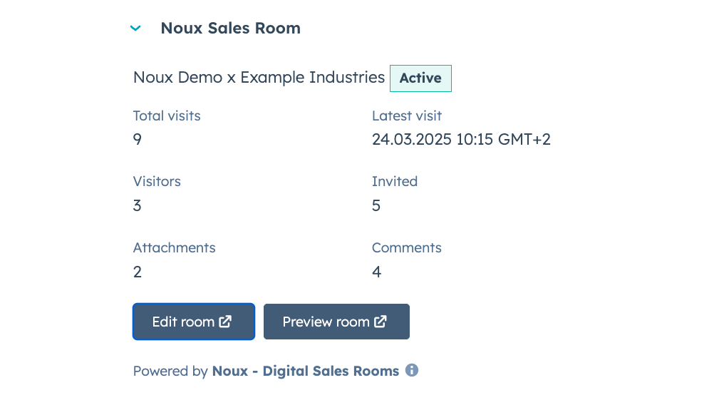 Noux will automatically send an activity note to your HubSpot deal when an invited person visits your Noux sales room.
