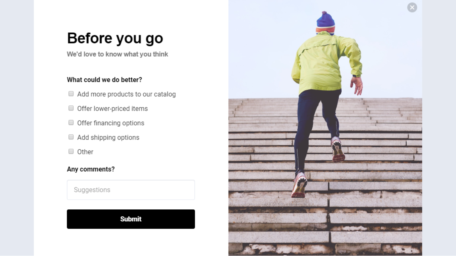 Get your abandoning visitors to complete their purchase using smart exit pop-ups.