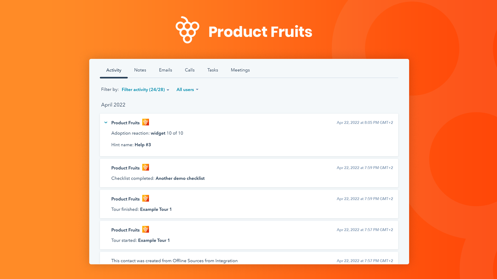 See events from Product Fruits on contacts timelines.