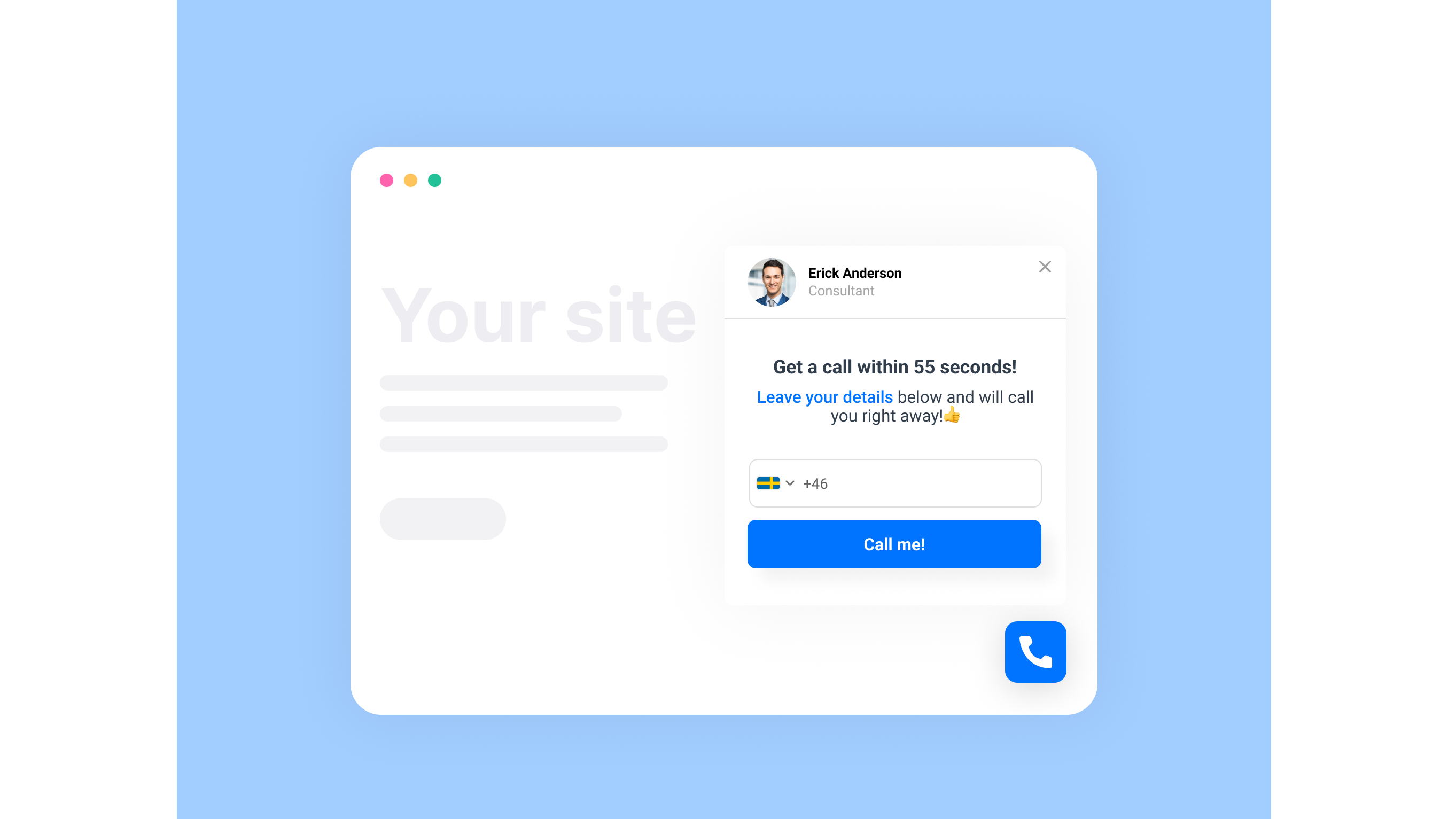 Connect your sales agents with new leads instantly - Brightcall Leads will offer your website visitors the option to leave their contact information and receive a call from your sales agent within seconds. Increase your sales calls by 124%!
