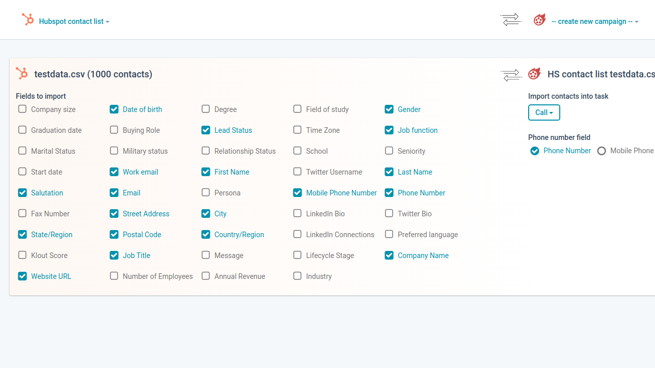 With just a few clicks, you will convert HubSpot static or dynamic contact lists into a Dialfire campaign, ready to go.