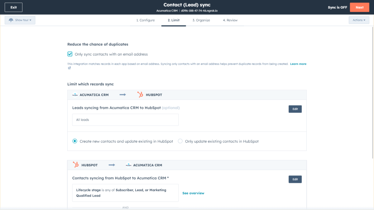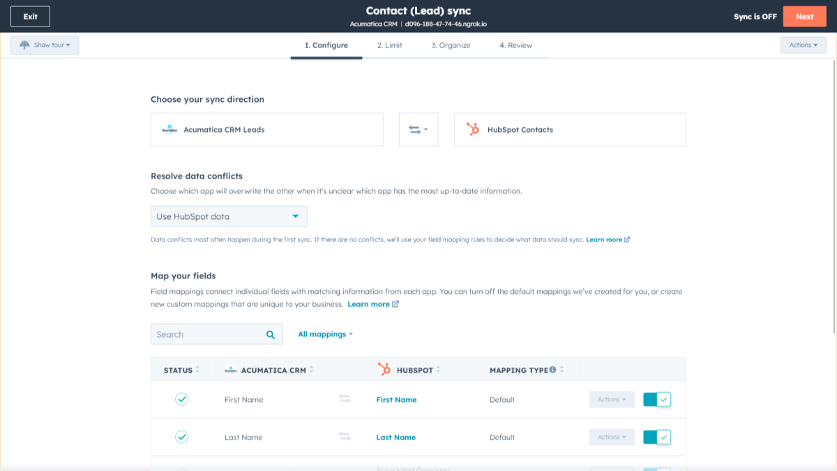 Data Sync - Sync Acumatica CRM data with HubSpot