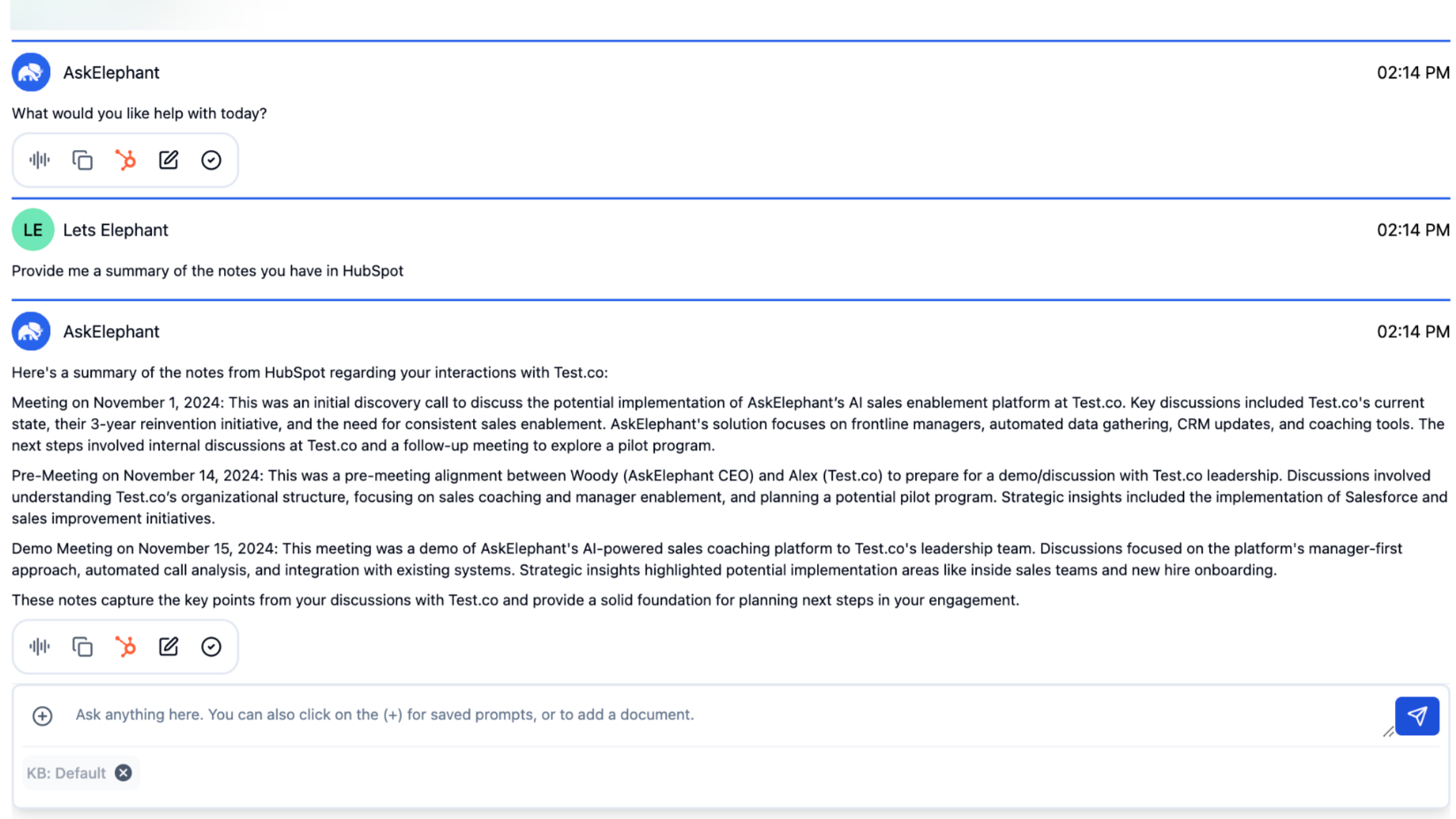 With AskElephant you can easily push and pull notes to HubSpot. With this feature you can AskElephant for a update of your HubSpot notes.