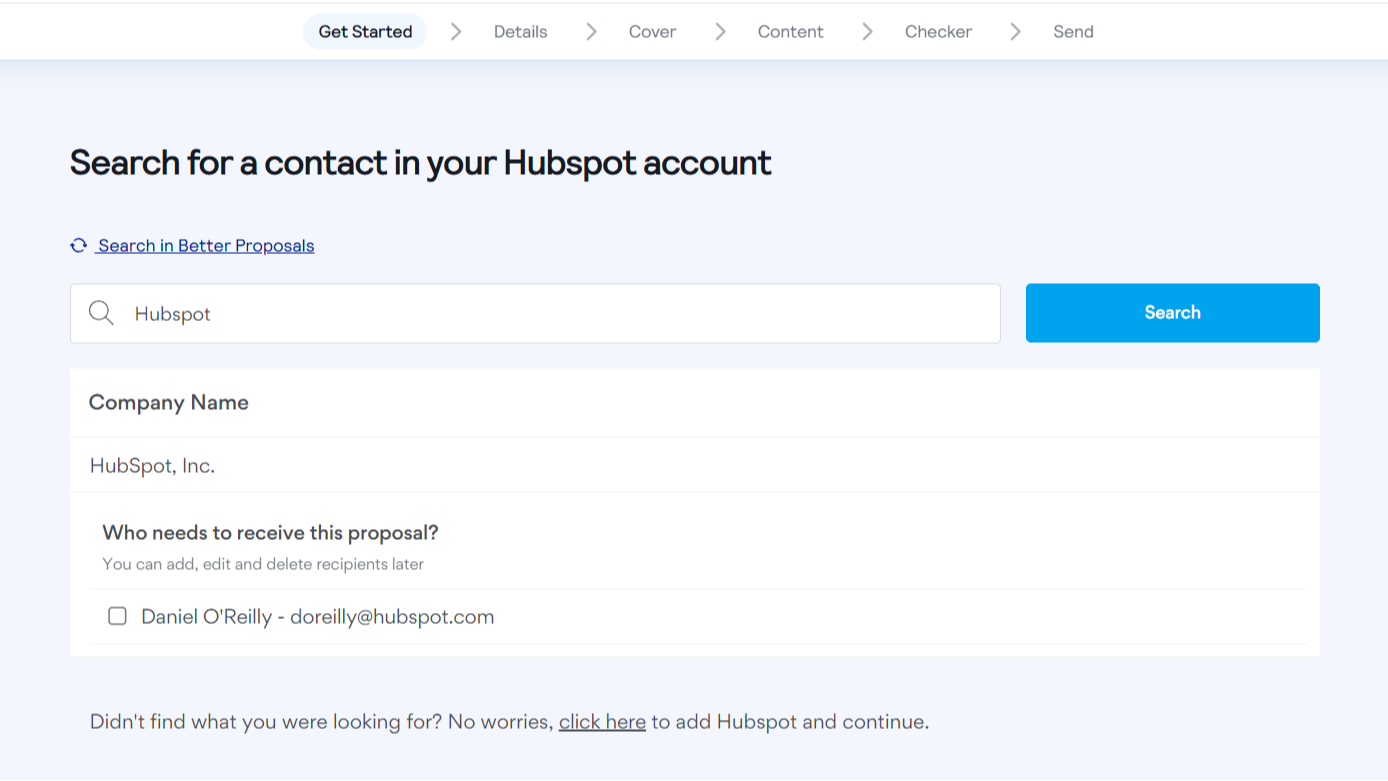When you search for a company record, it will pull through any associated contacts so you can select who the proposal is going to be sent to.