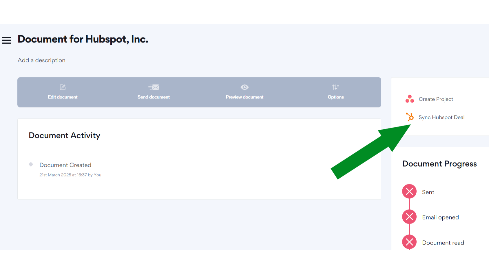 Once you've created the proposal, you can sync it back to any of that company's associated deals. A note is posted to the deal whenever the proposal is opened or signed so you can keep track of activity.